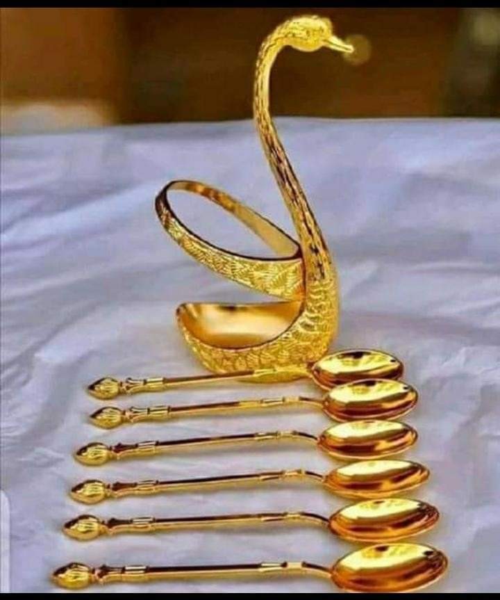 Lot de 6 petites cuillières dorées + support